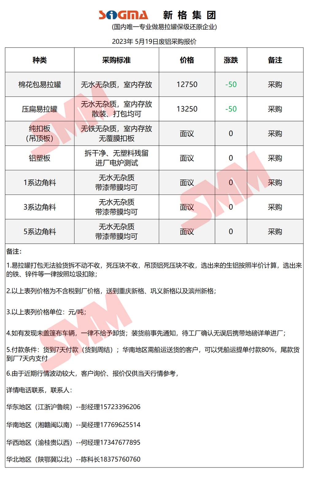 5月19日新格集团 废铝采购报价