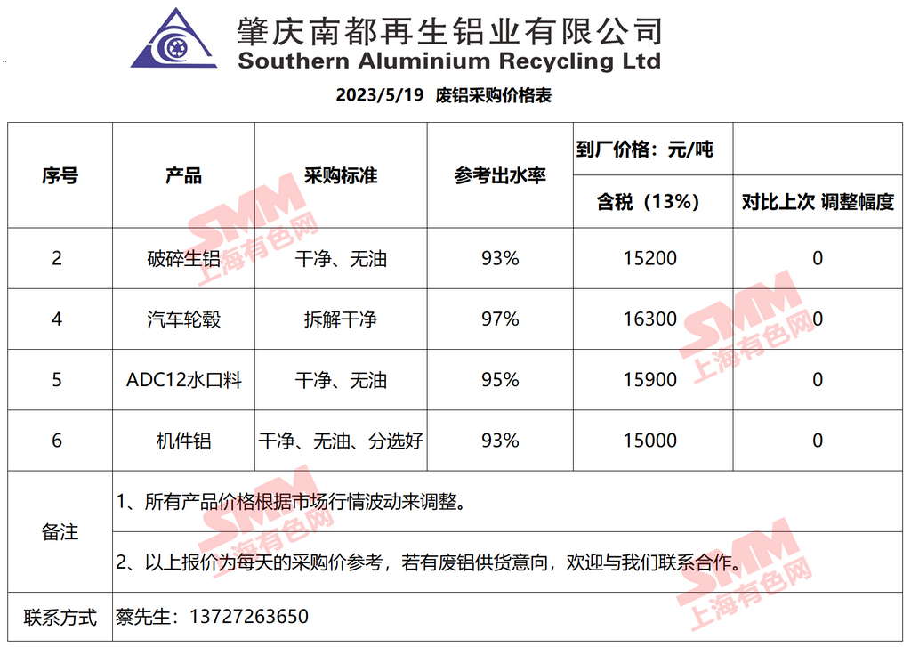 今日南都再生铝业 废铝采购报价已更新,有货的朋友欢迎联系我们!