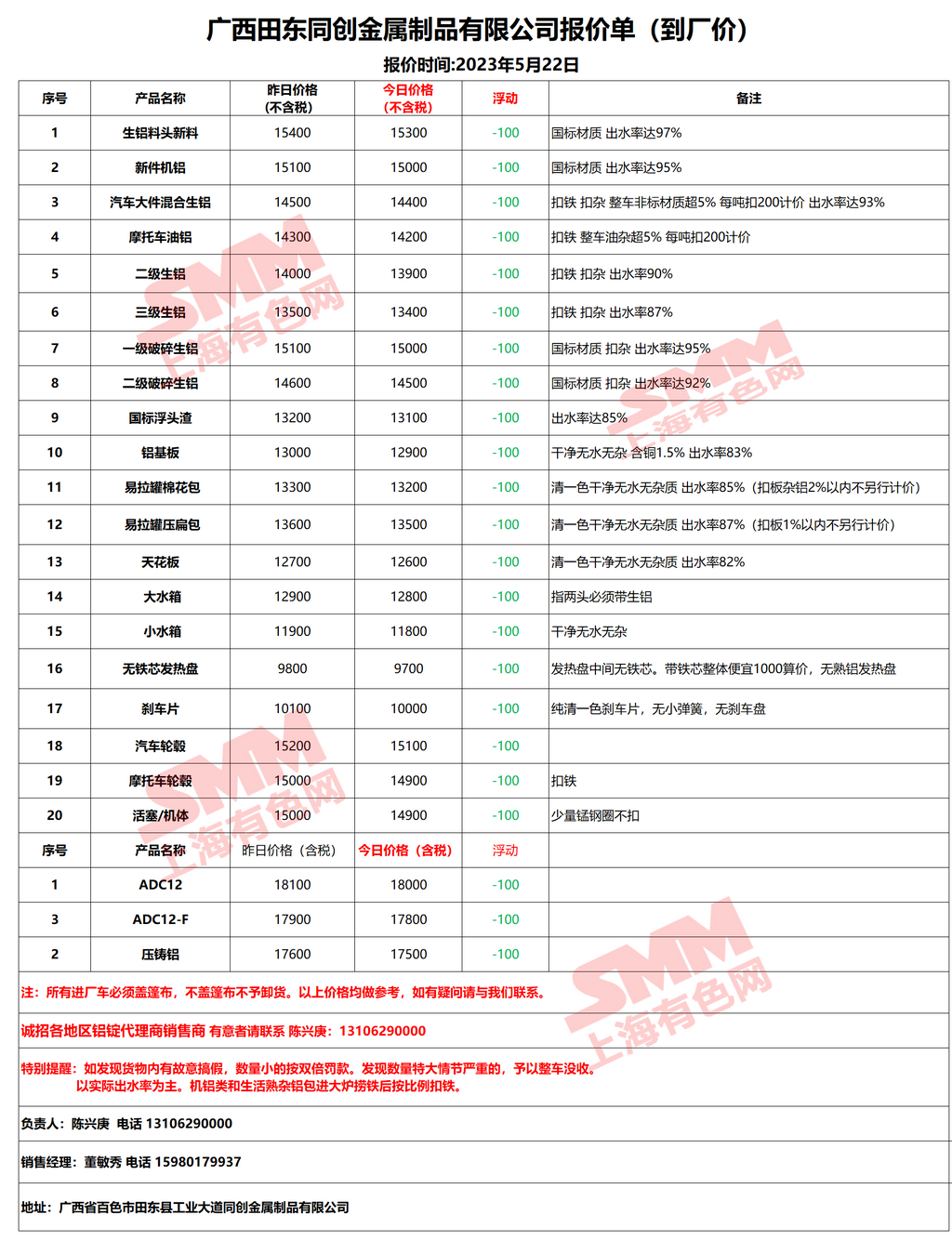 今日广西田东同创金属制品有限公司 废铝采购报价已更新,有货的朋友欢迎联系我们!