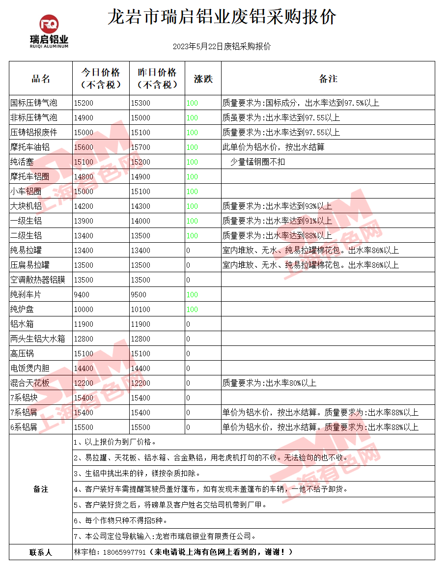 今日龙岩瑞启 废铝采购报价已更新,有货的朋友欢迎联系我们!