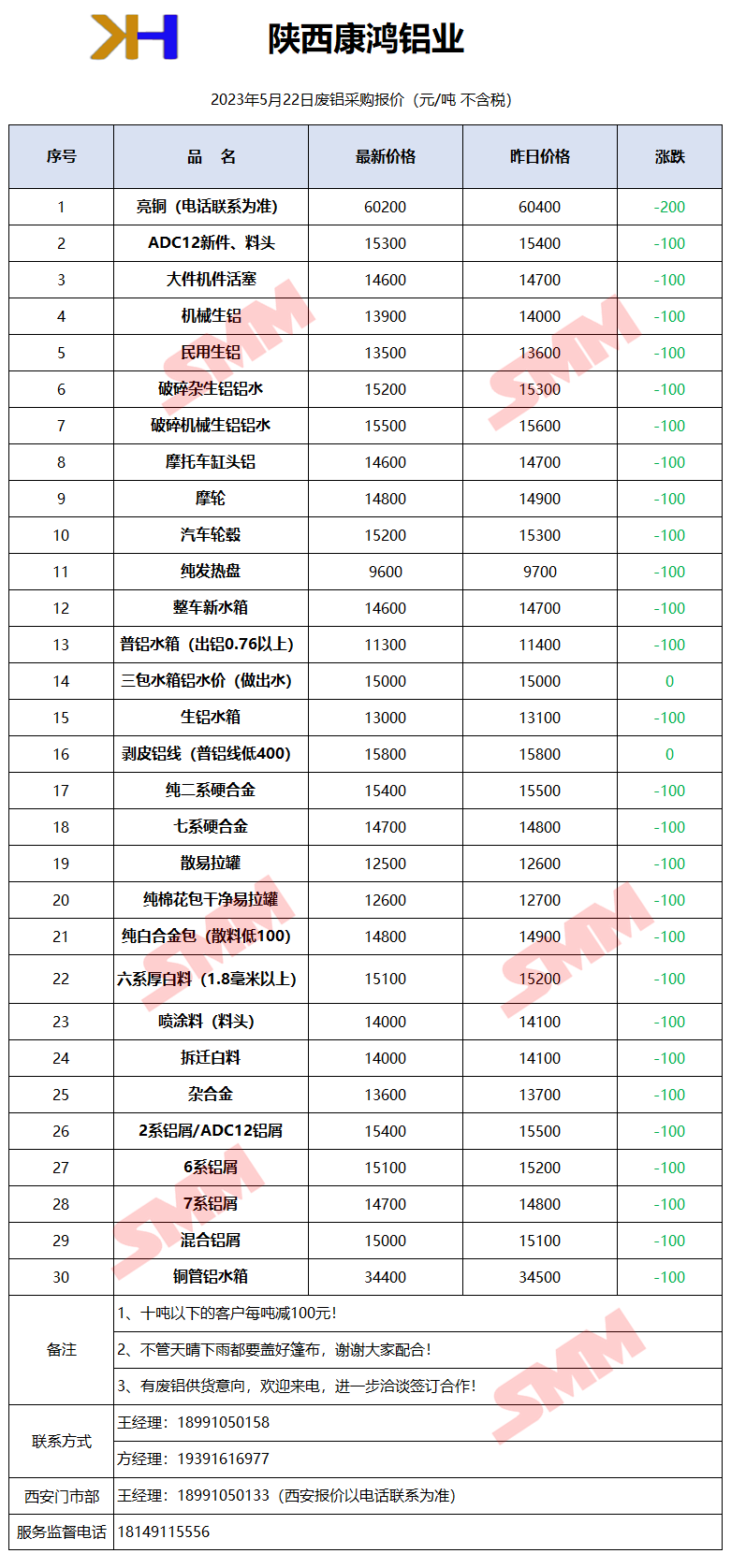 5月22日陕西康鸿 废铝采购报价