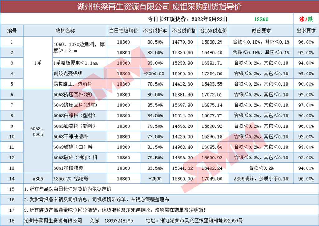5月23日湖州栋梁再生 废铝采购报价