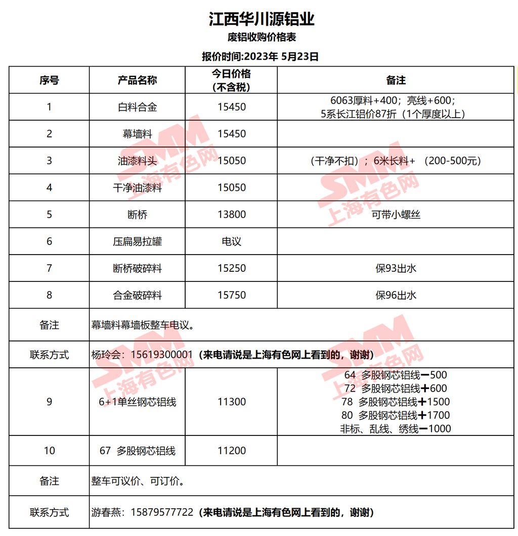 5月23日江西华川源 废铝收购报价