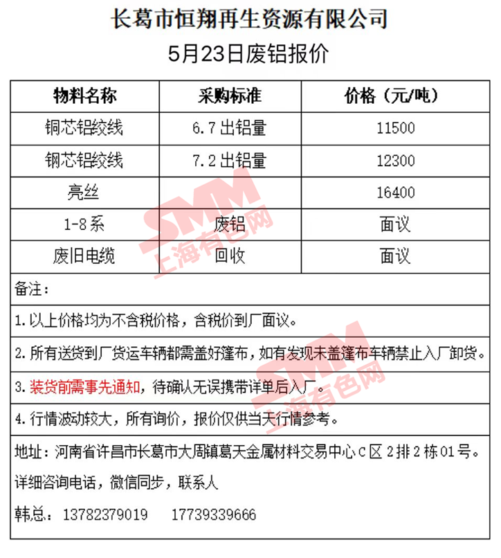 5月23日长葛恒翔 废铝采购报价