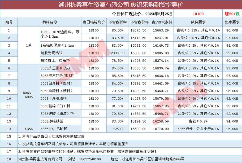 5月25日湖州栋梁再生 废铝采购报价