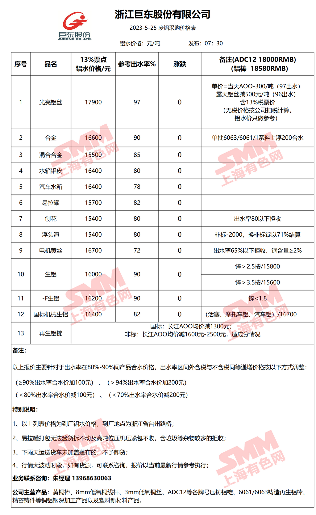 5月25日浙江巨东 废铝采购报价