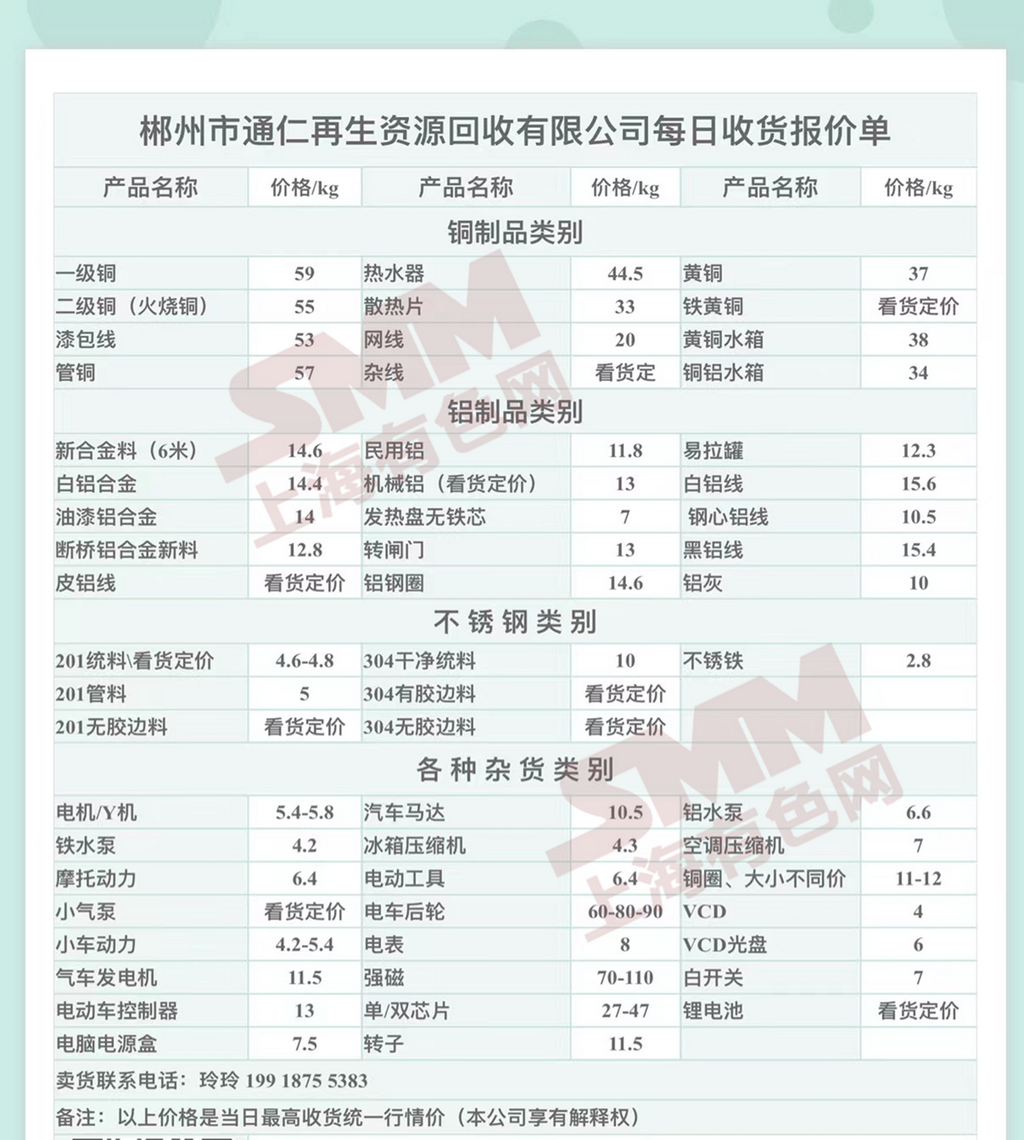 5月25日郴州通仁 废铝收购报价