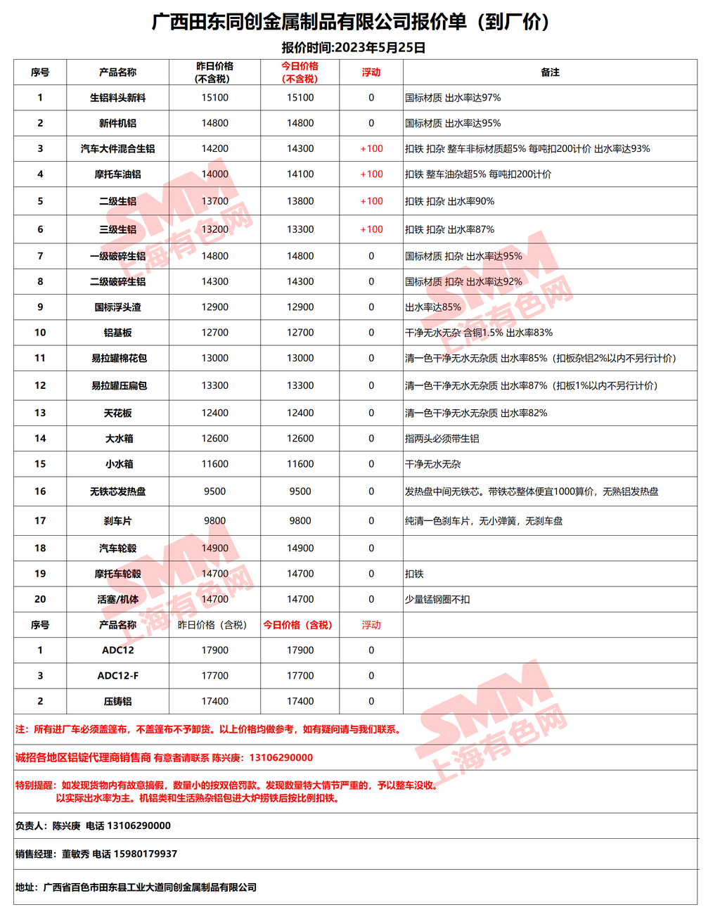 今日广西田东同创金属制品有限公司 废铝采购报价已更新,有货的朋友欢迎联系我们!