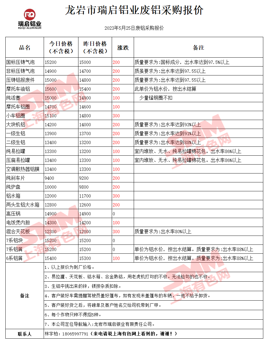 今日龙岩瑞启 废铝采购报价已更新,有货的朋友欢迎联系我们!