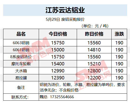 今日江苏云达铝业 废铝采购报价已更新,有货的朋友欢迎联系我们!