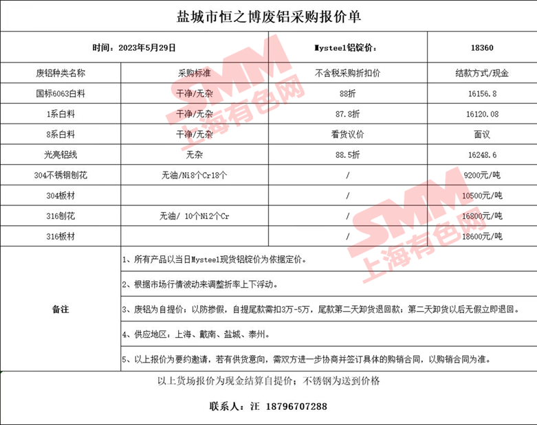 5月29日盐城市恒之博 废铝采购报价