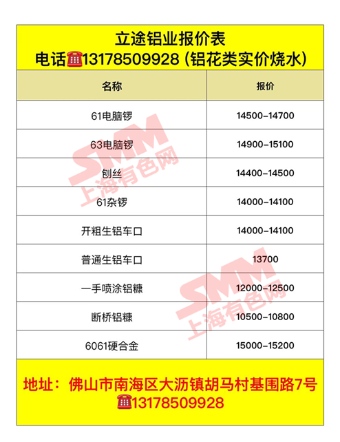 佛山立途铝业有限公司 今日废铝采购报价已更新,有货的欢迎来电咨询。