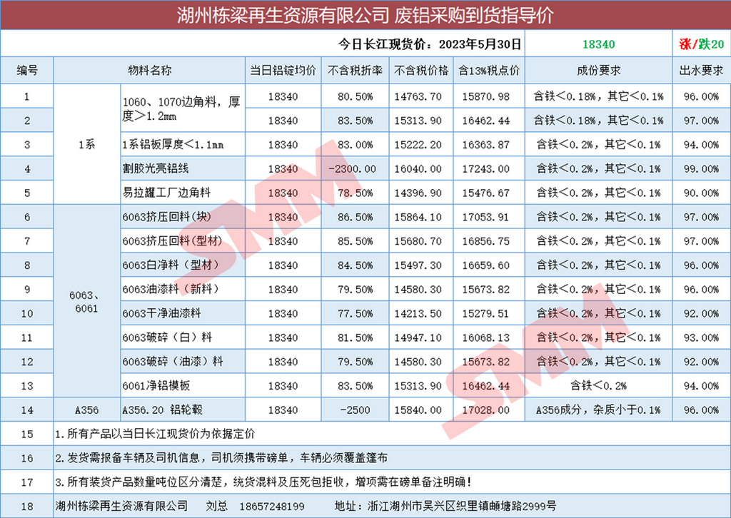 5月30日湖州栋梁再生 废铝采购报价