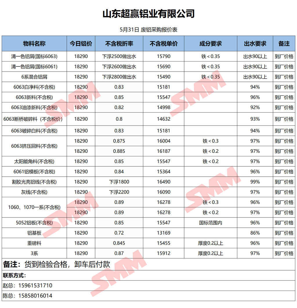 5月31日超赢铝业 废铝采购报价