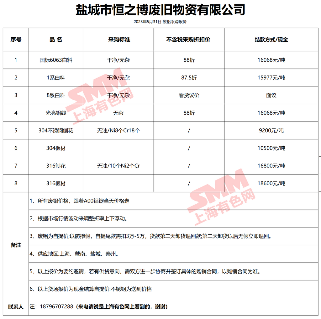 今日盐城市恒之博 废铝采购报价已更新,有货的朋友欢迎联系我们!