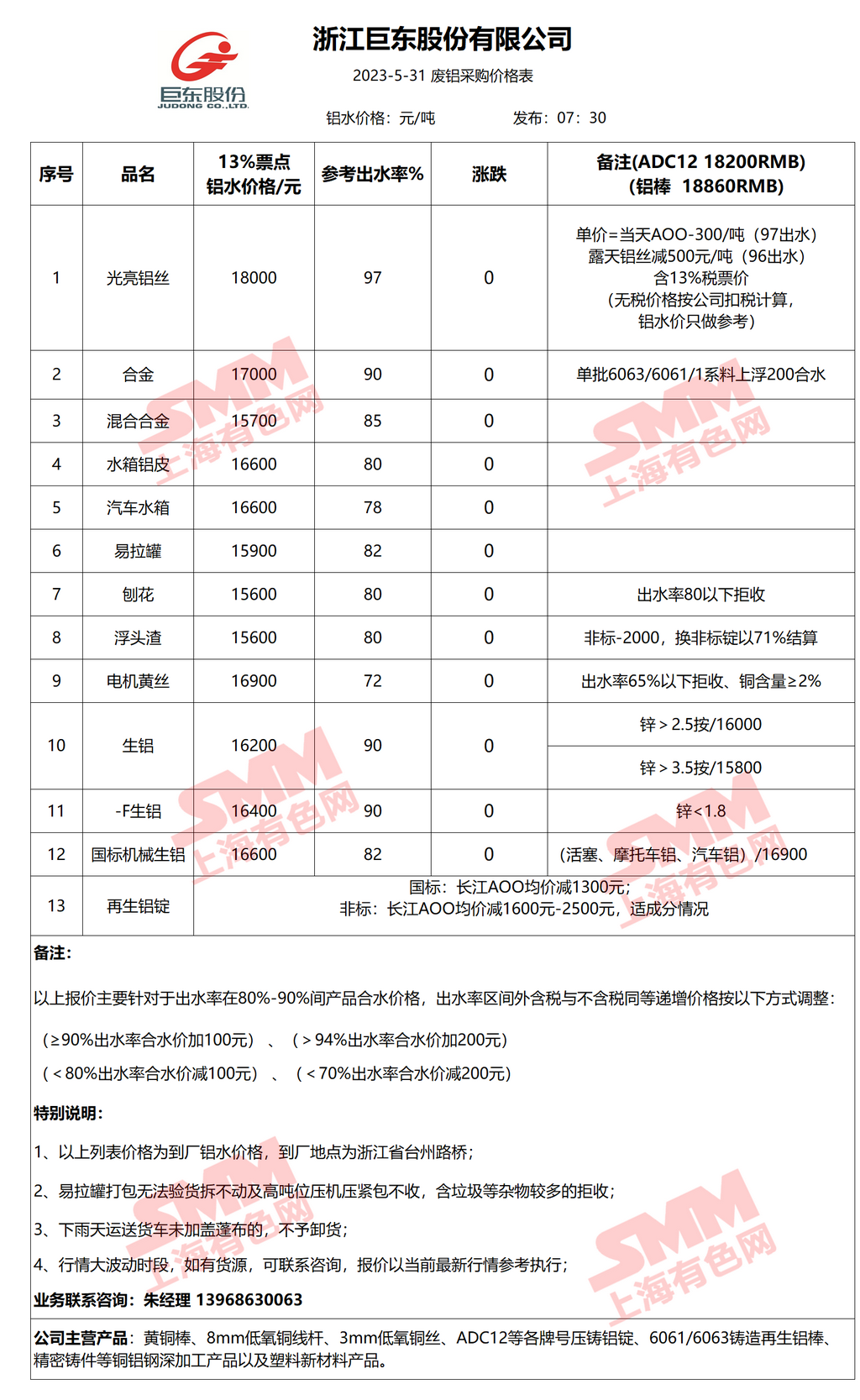 5月31日浙江巨东 废铝采购报价