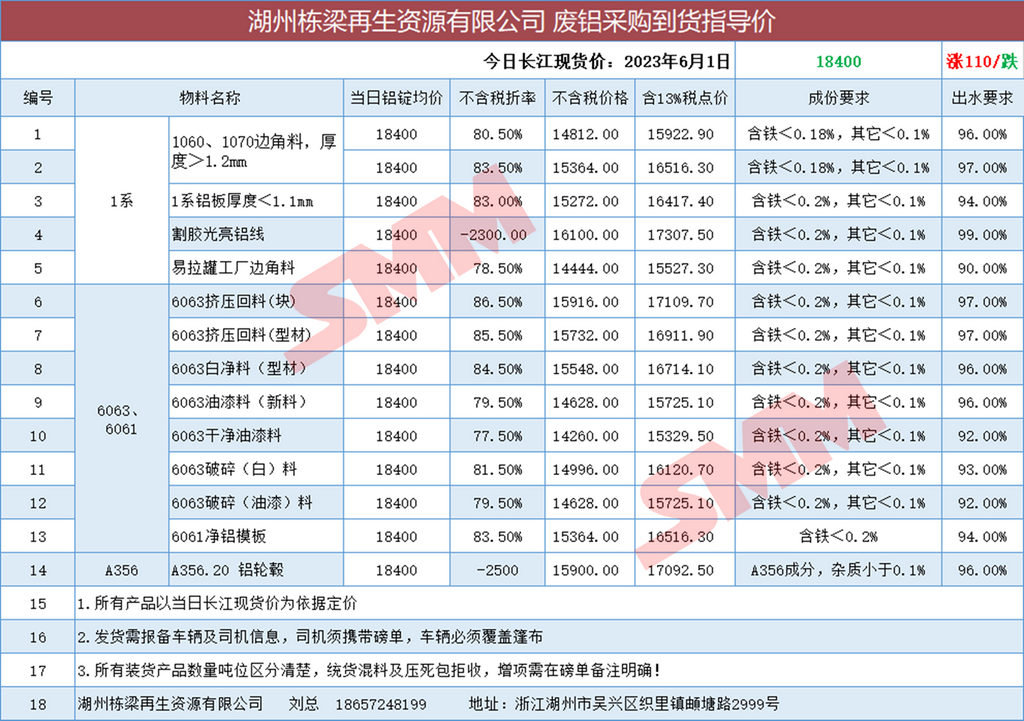 6月1日湖州栋梁再生 废铝采购报价
