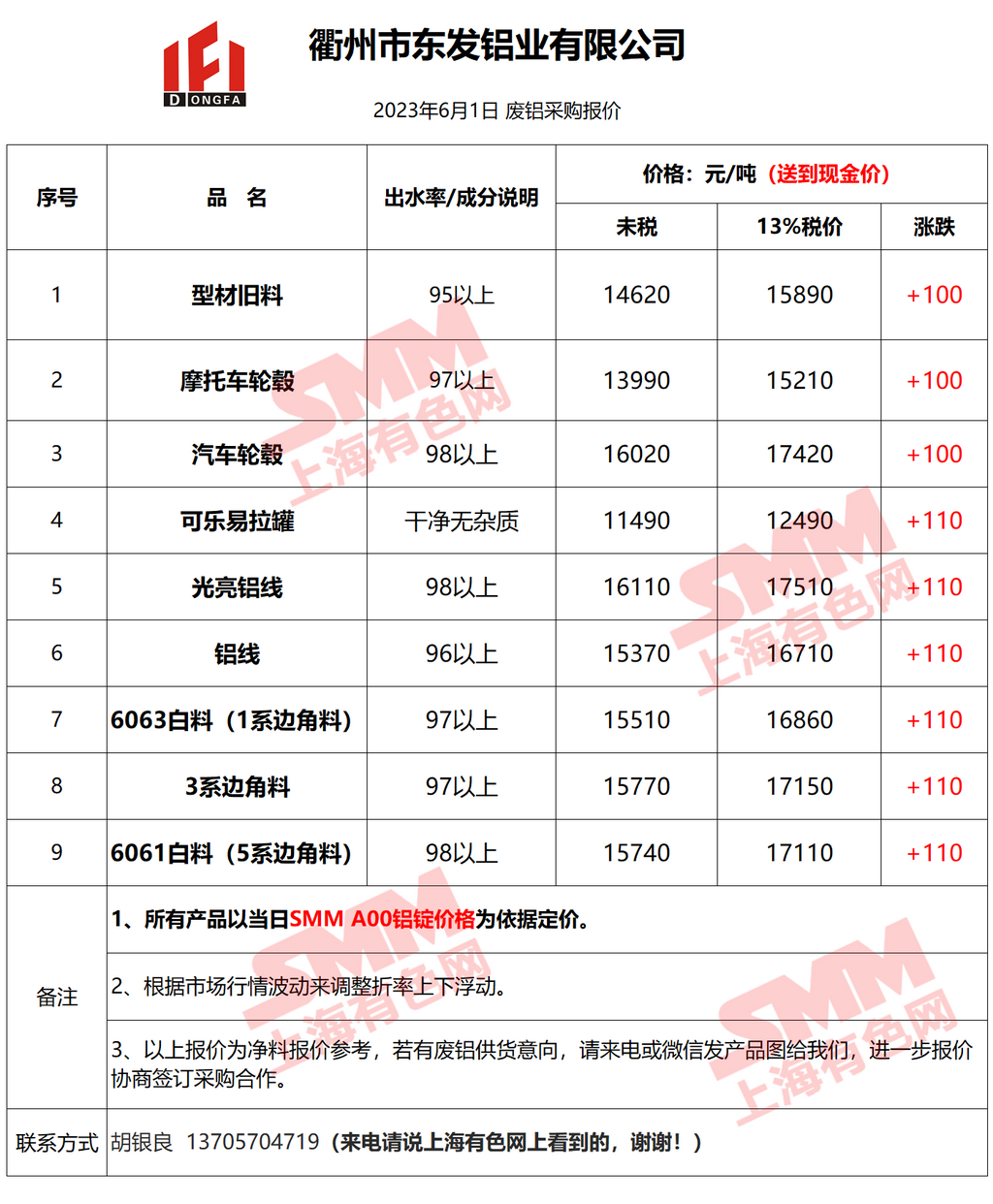 6月1日衢州东发 废铝采购报价