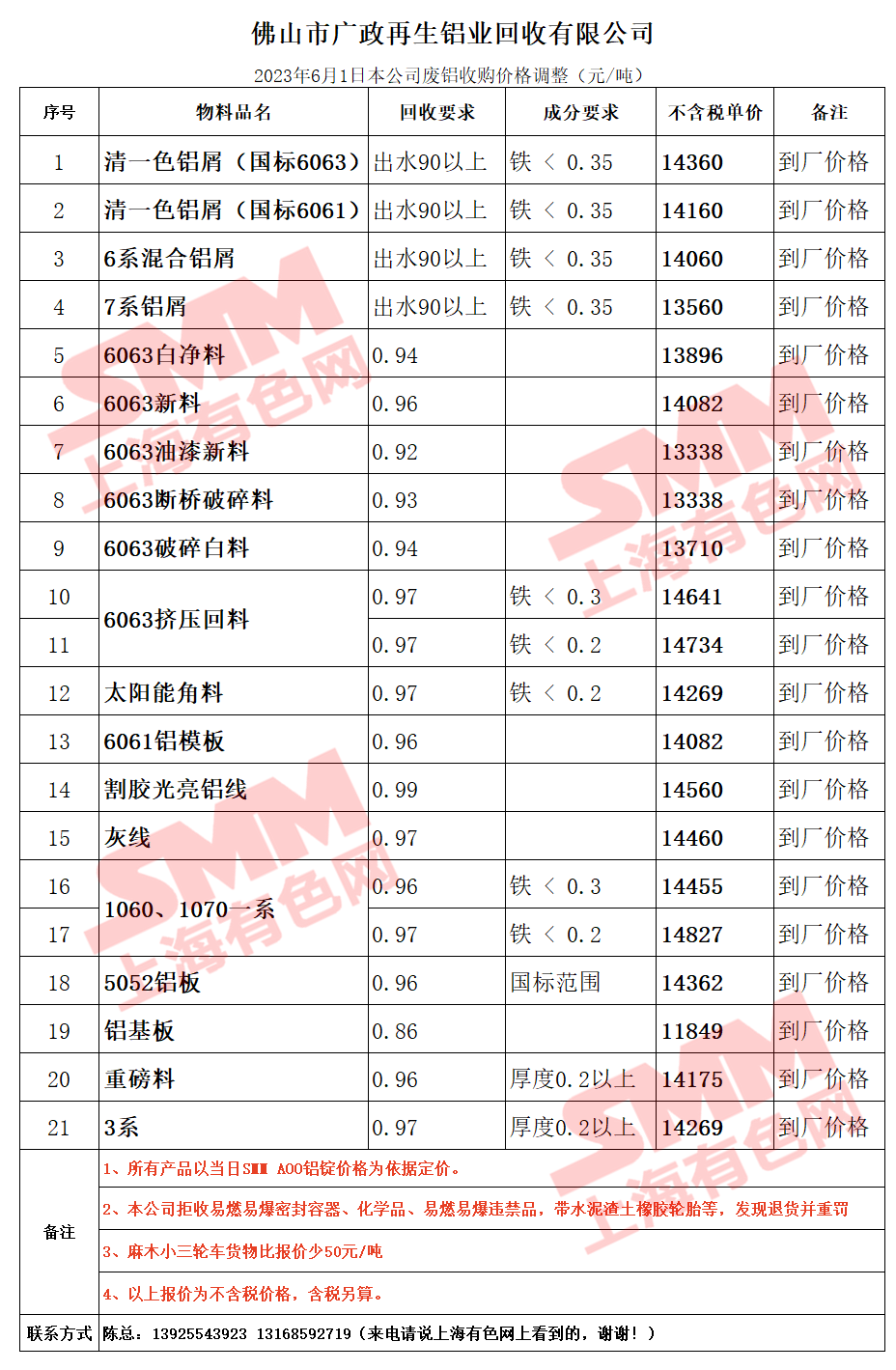 今日佛山市广政再生铝业回收有限公司 废铝收购报价已更新,有货的朋友欢迎联系我们!
