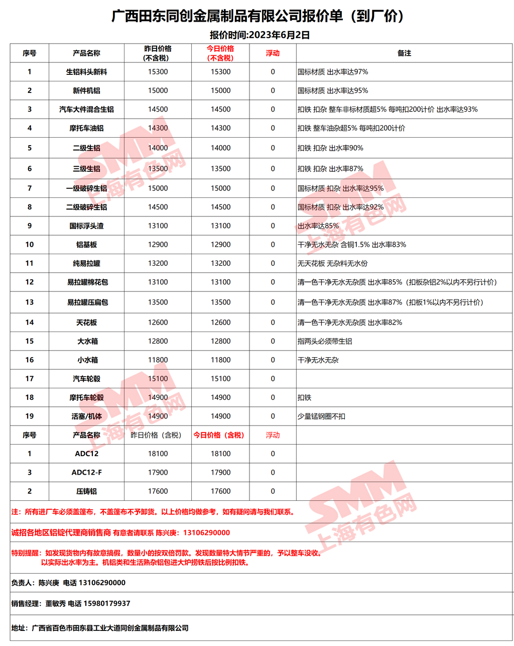 6月2日广西同创 废铝采购报价