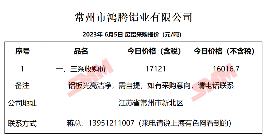 今日常州市鸿腾铝业有限公司 废铝采购报价已更新,有货的朋友欢迎联系我们!
