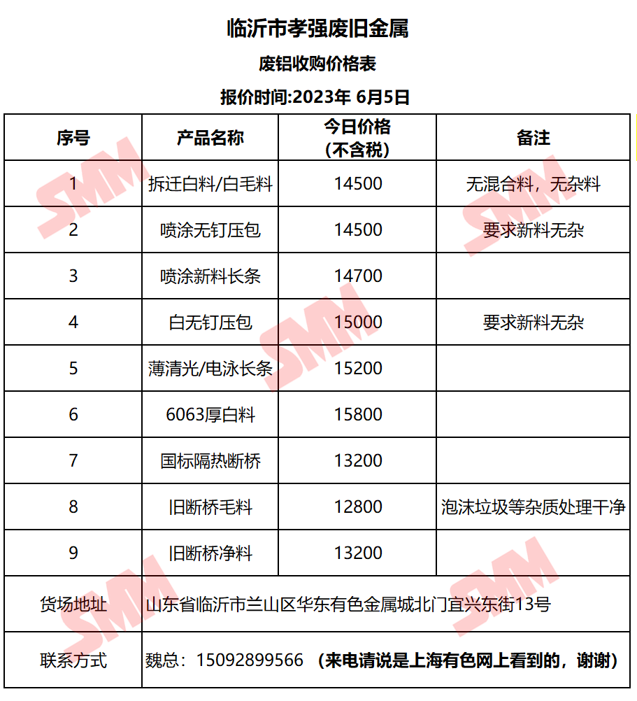 今日临沂市孝强废旧金属 废铝收购报价已更新,有货的朋友欢迎联系我们!