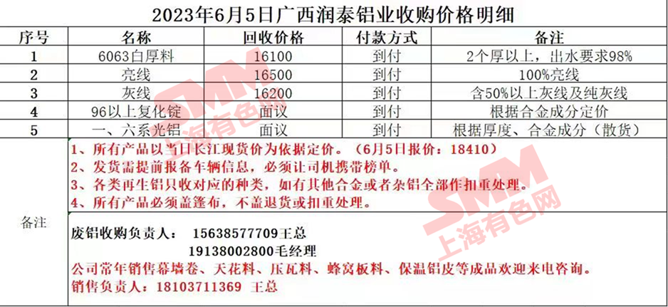6月5日广西润泰铝业 废铝采购报价