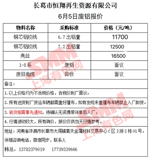 6月5日长葛恒翔 废铝采购报价