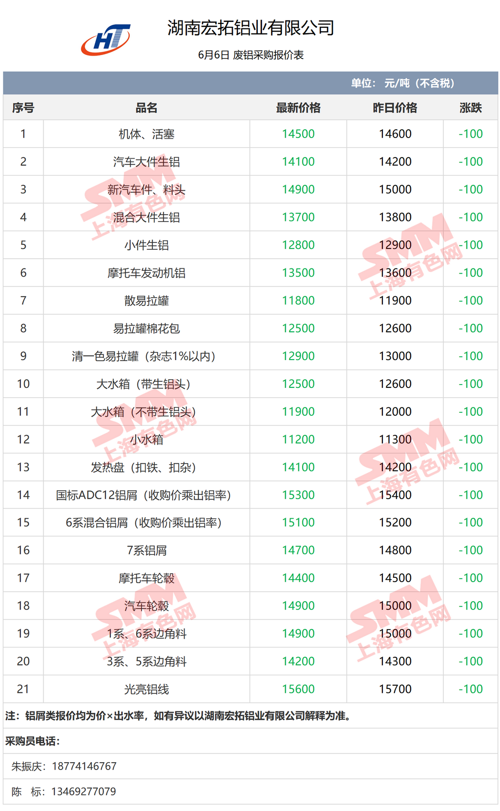 6月6日湖南宏拓铝业 废铝采购报价
