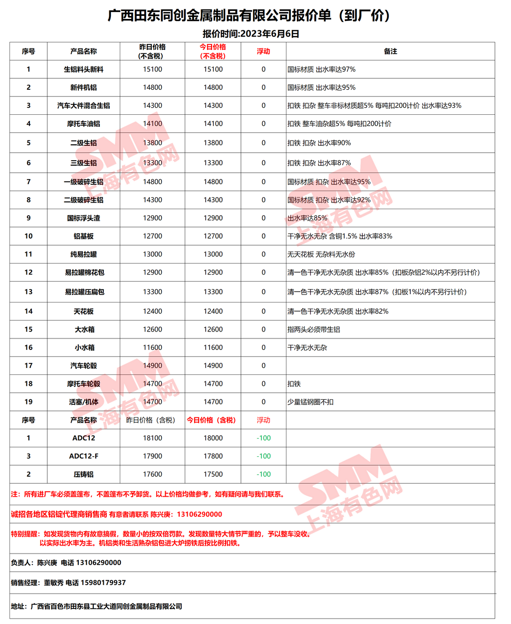 6月6日广西同创 废铝采购报价