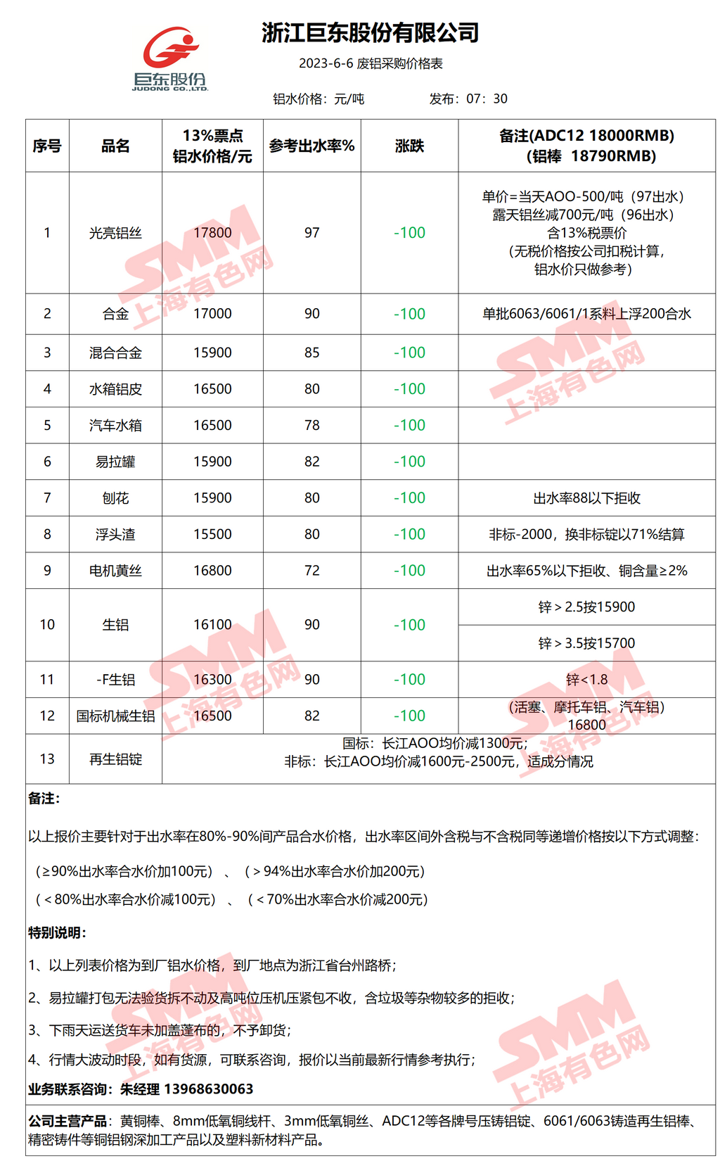 今日浙江巨东 废铝采购报价已更新,有货的朋友欢迎联系我们!