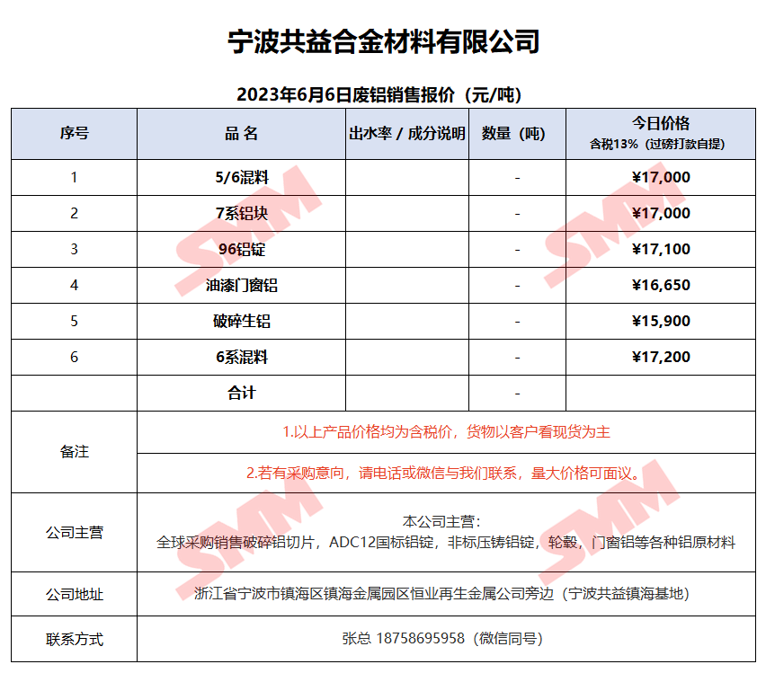 今日宁波共益,废铝销售报价已更新,有采购需求的朋友,欢迎联系我们!