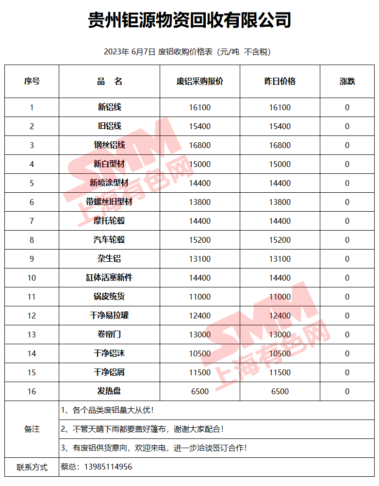 今日贵州钜源物资回收有限公司 废铝采购报价已更新,有货的朋友欢迎联系我们!