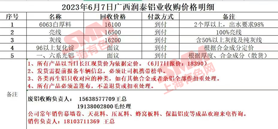 今日广西润泰铝业 废铝采购报价已更新,有货的朋友欢迎联系我们!
