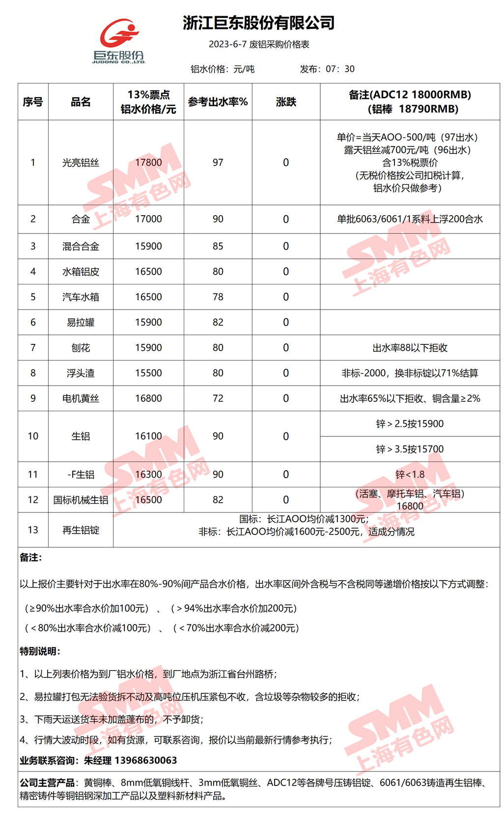 今日浙江巨东 废铝采购报价已更新,有货的朋友欢迎联系我们!