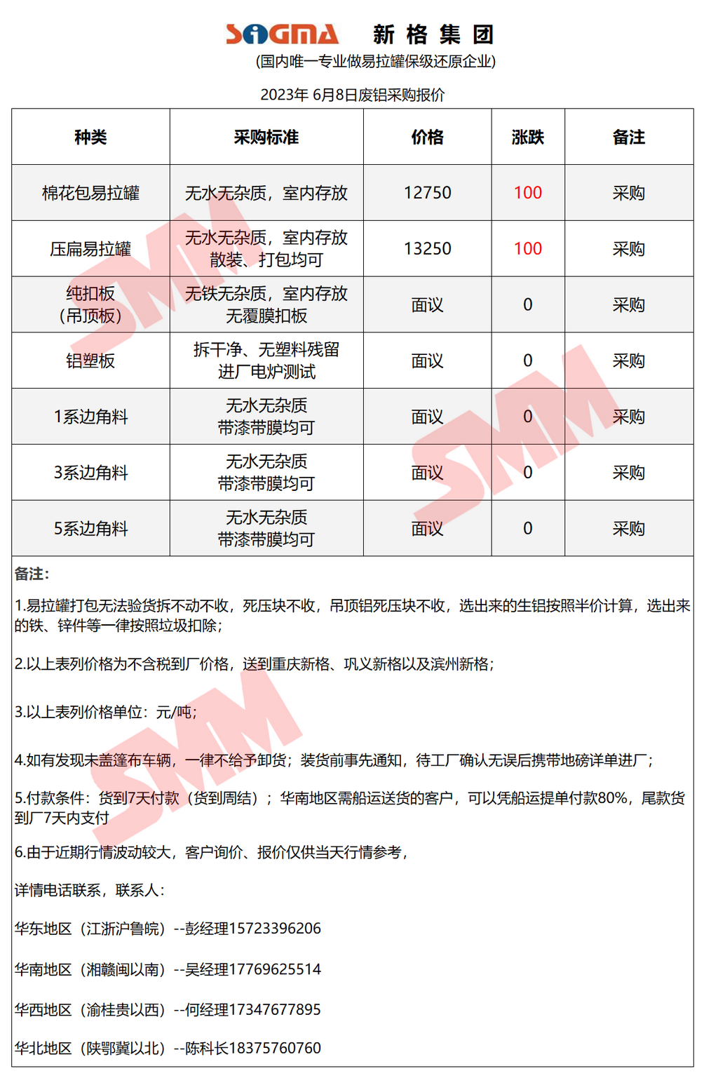 今日新格集团 废铝采购报价已更新,有货的朋友欢迎联系我们!