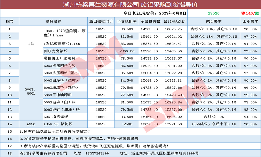 今日湖州栋梁 废铝采购报价已更新,有货的朋友欢迎联系我们!