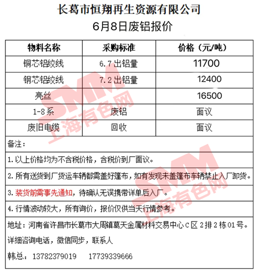 今日长葛恒翔 废铝采购报价已更新,有货的朋友欢迎联系我们!