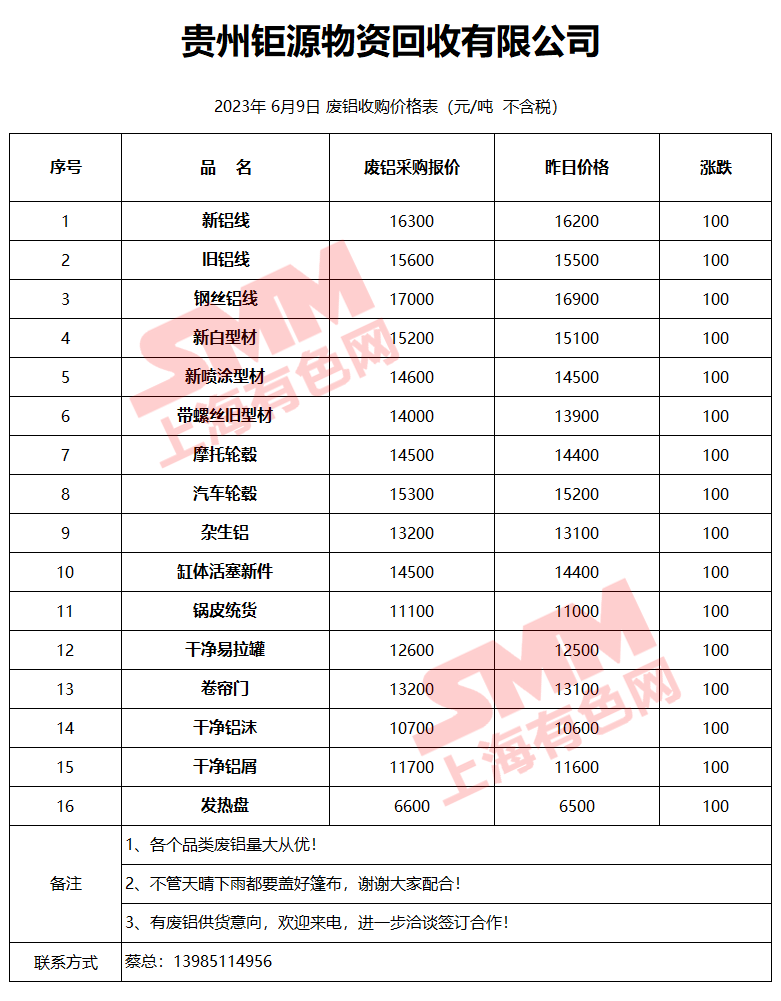 6月9日贵州钜源 废铝收购报价