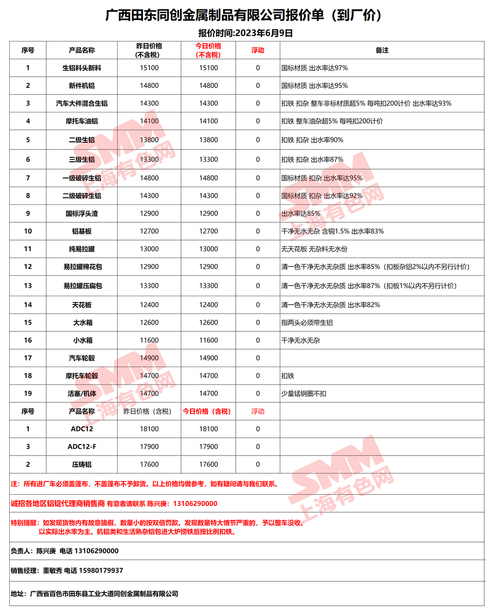 6月9日广西同创 废铝采购报价