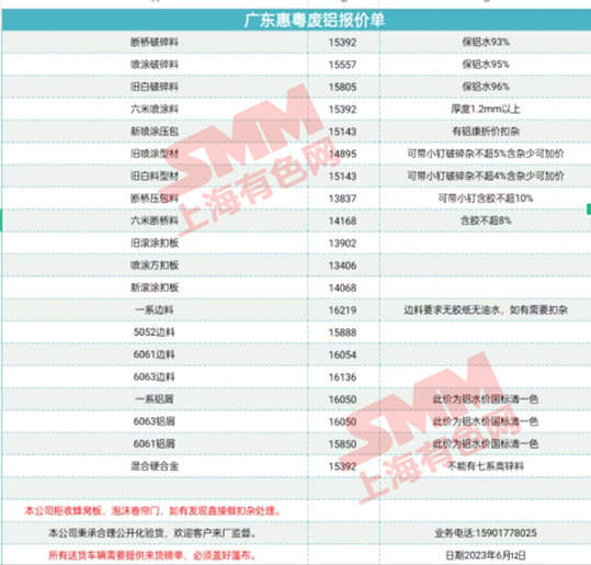 广东惠粤今日主要废铝料收购价目表,有废铝出货的朋友,请与我们联系。