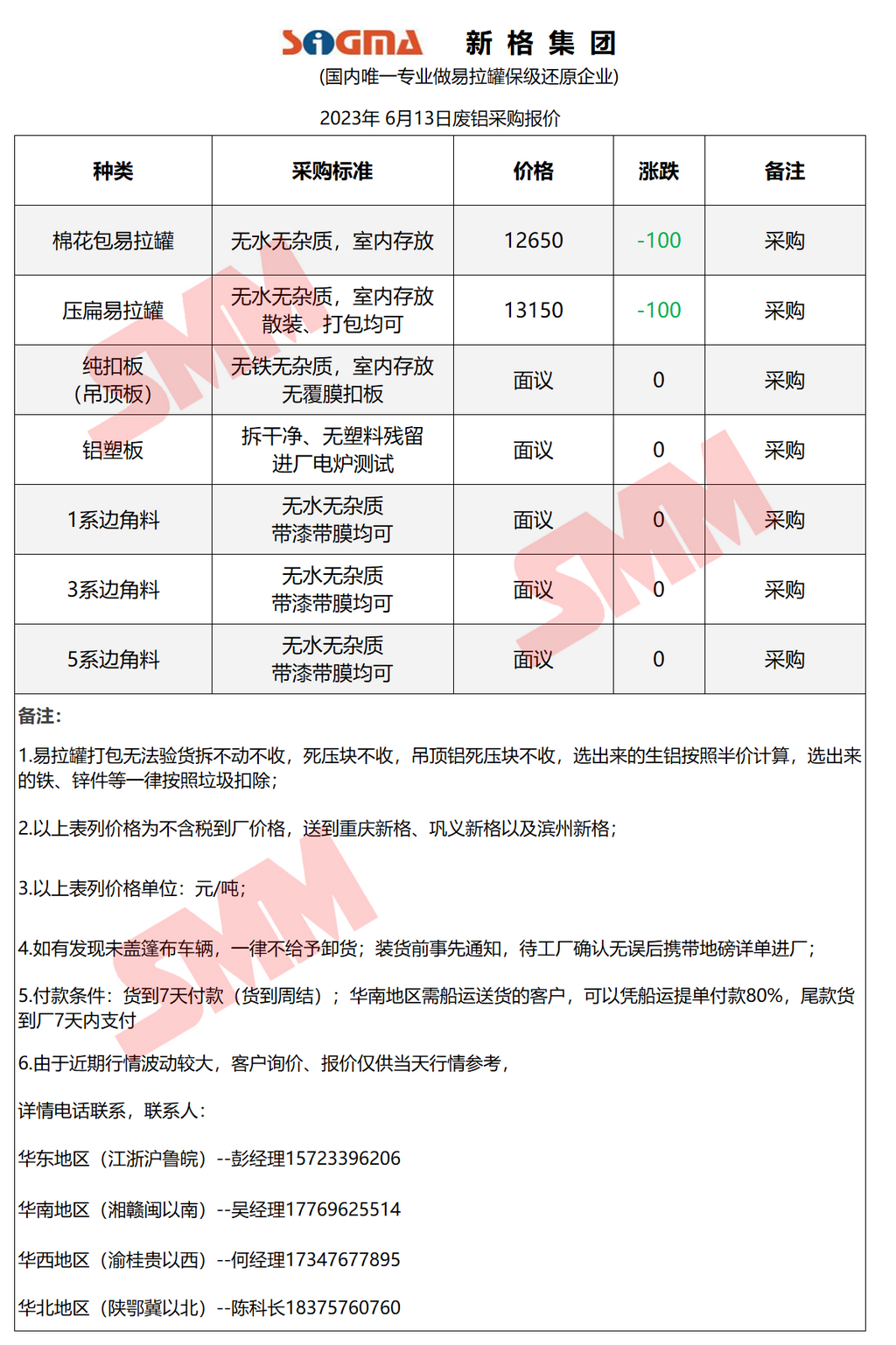 6月13日新格集团 废铝采购报价