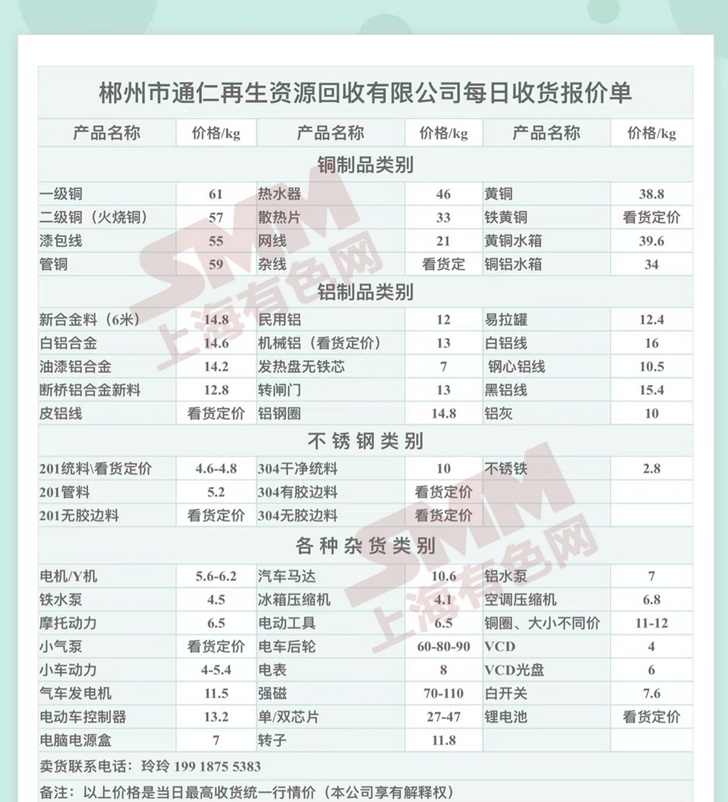 今日郴州市通仁再生资源回收有限公司 废金属收购报价已更新,有货的朋友欢迎联系我们!