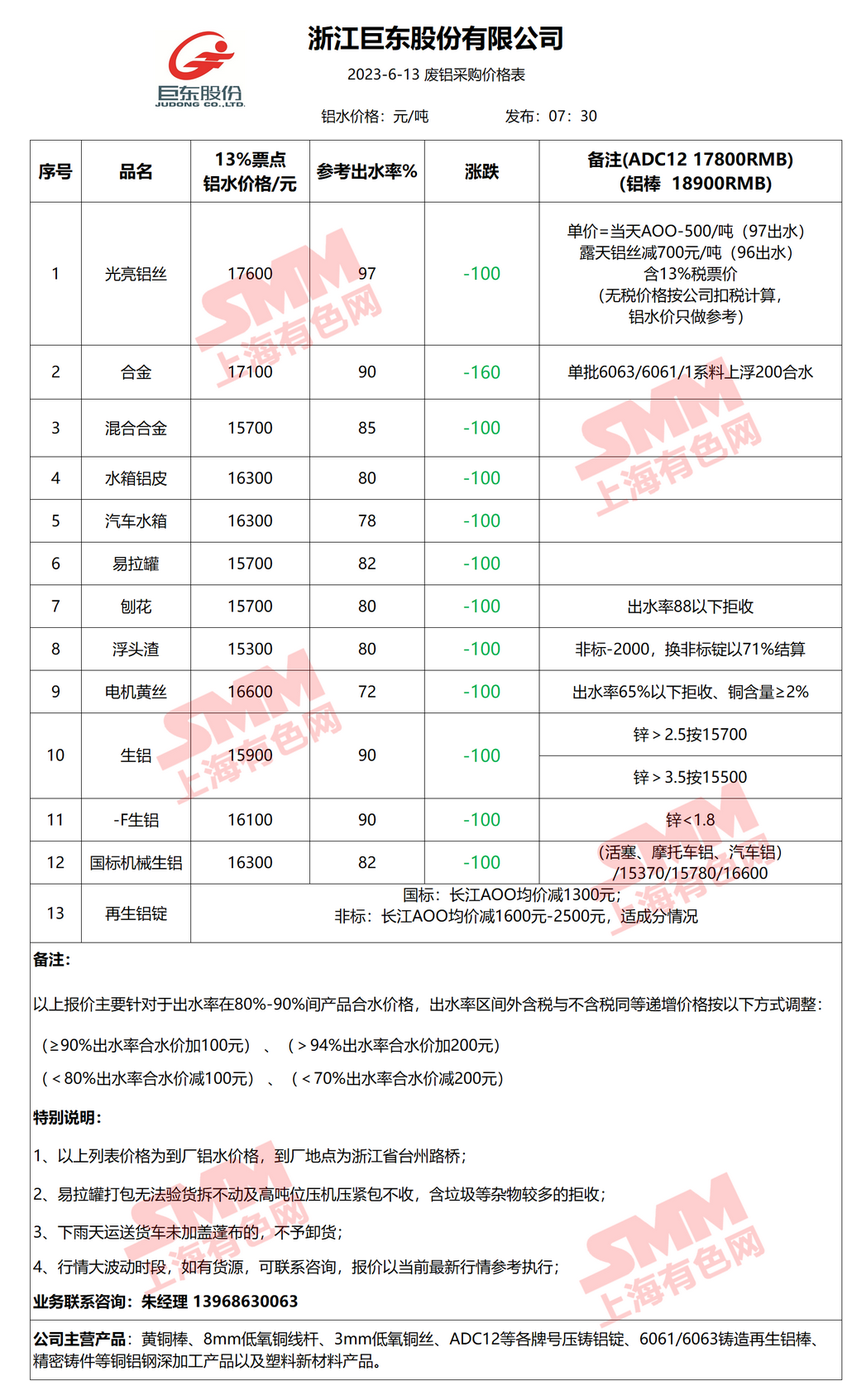 今日浙江巨东 废铝采购报价已更新,有货的朋友欢迎联系我们!