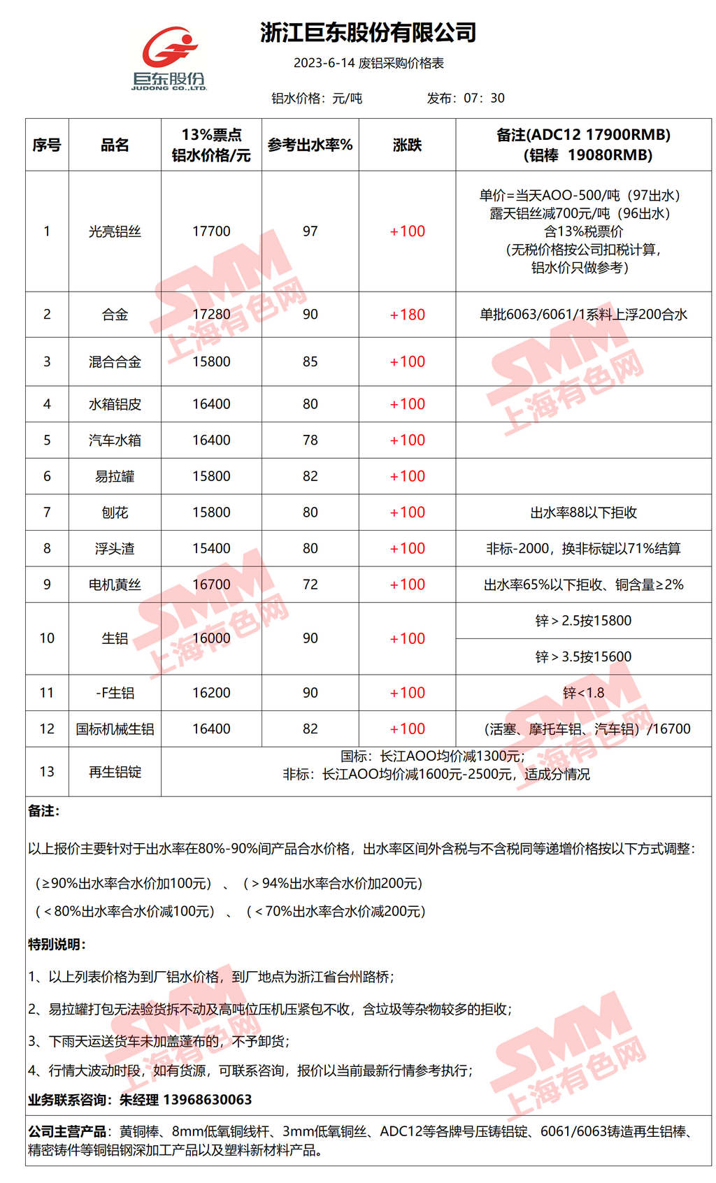 今日浙江巨东 废铝采购报价已更新,有货的朋友欢迎联系我们!