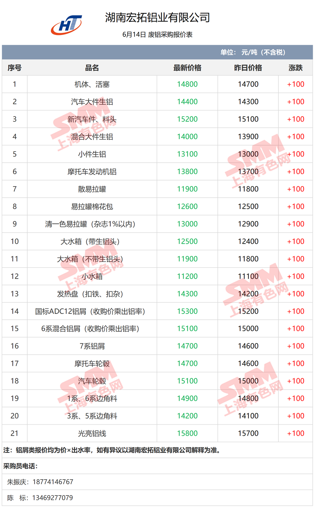 6月14日湖南宏拓铝业 废铝采购报价