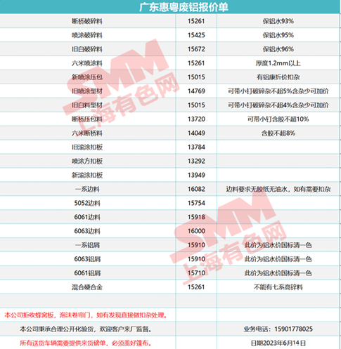 广东惠粤今日主要废铝料收购价目表,有废铝出货的朋友,请与我们联系。