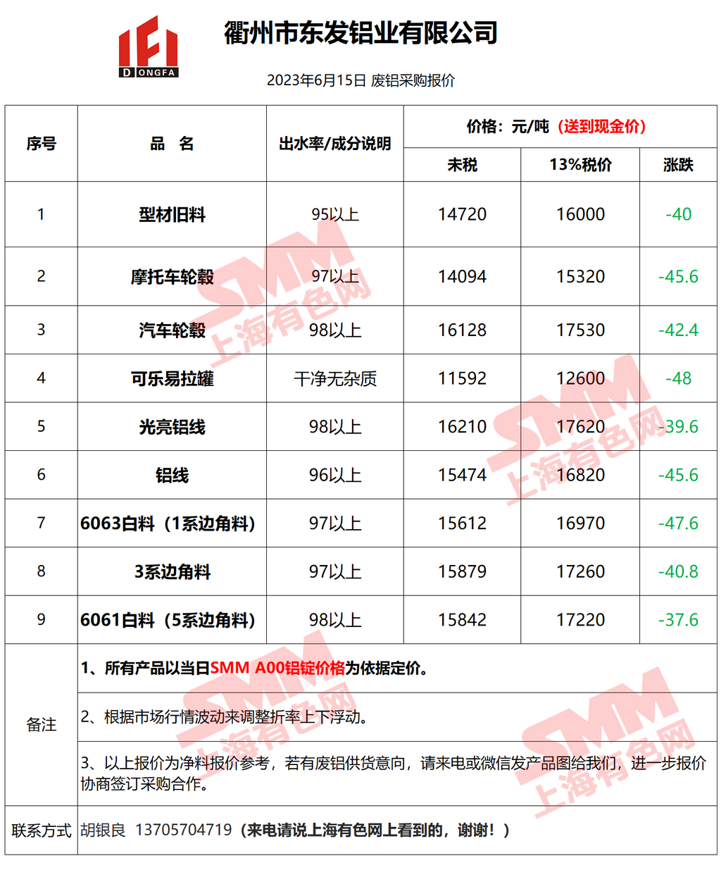 6月15日衢州东发 废铝采购报价