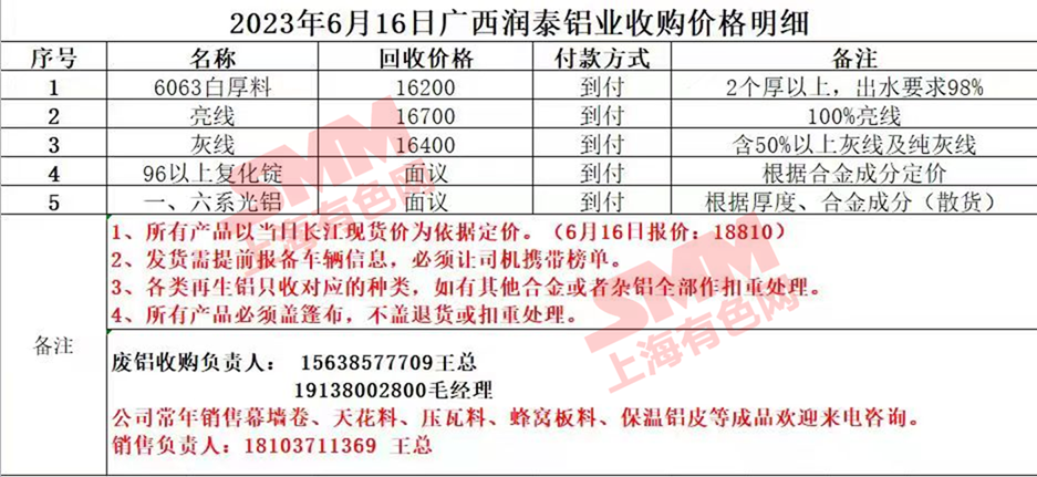 6月16日广西润泰铝业 废铝采购报价