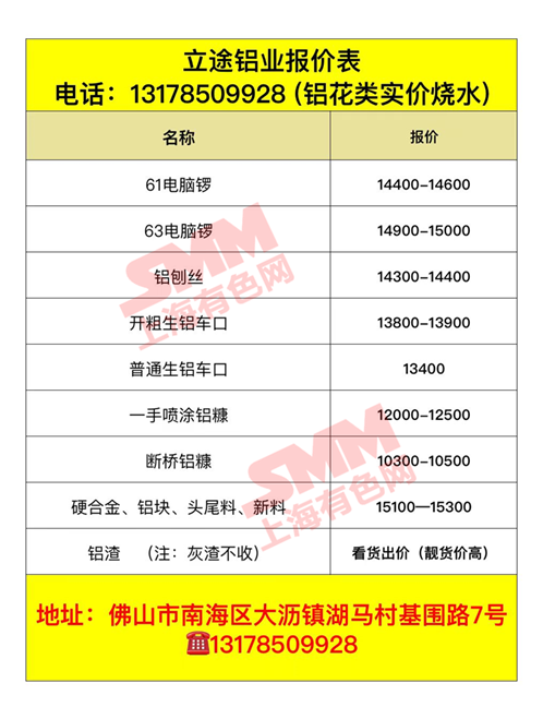 佛山立途铝业有限公司 今日废铝采购报价已更新,有货的欢迎来电咨询。
